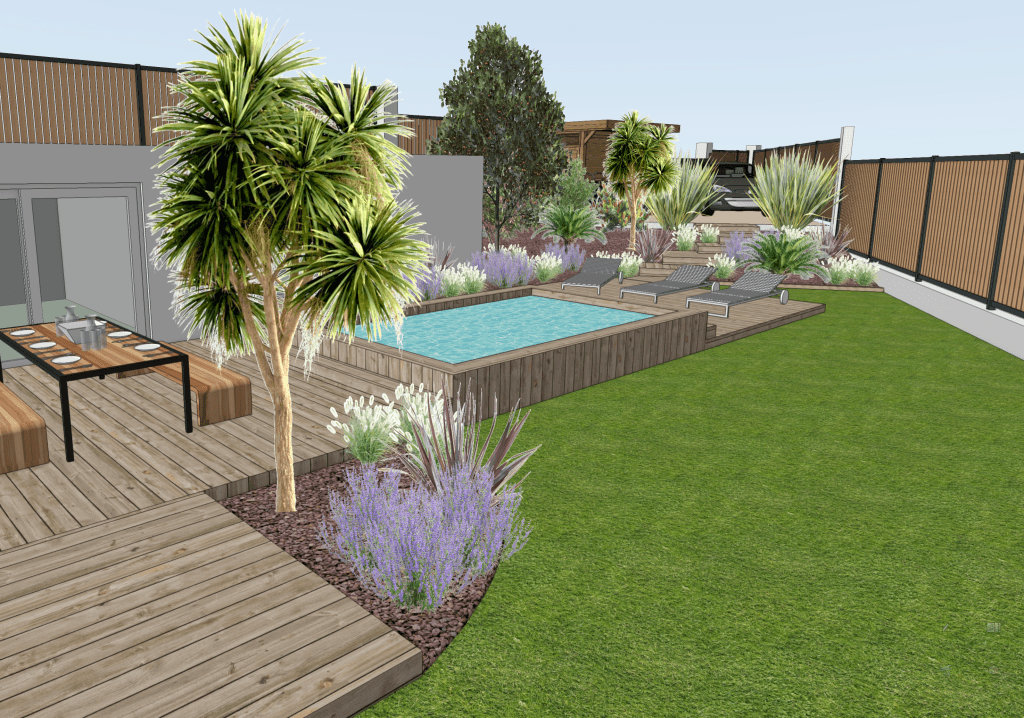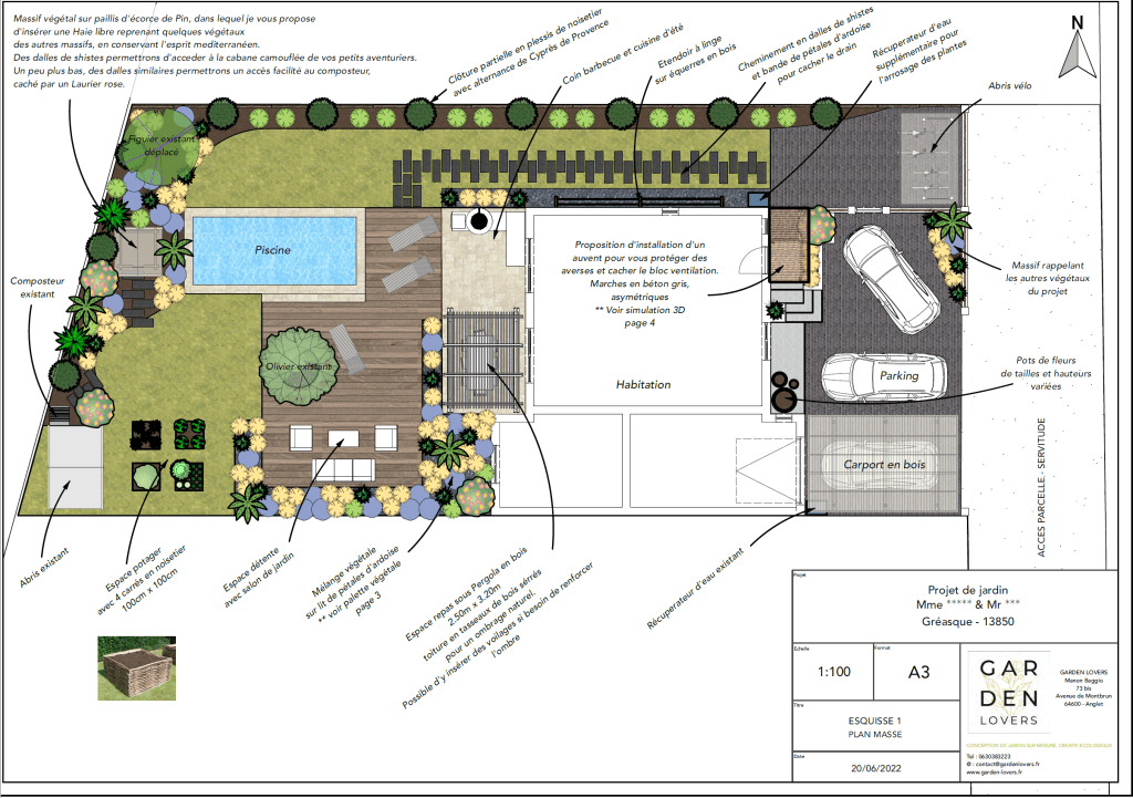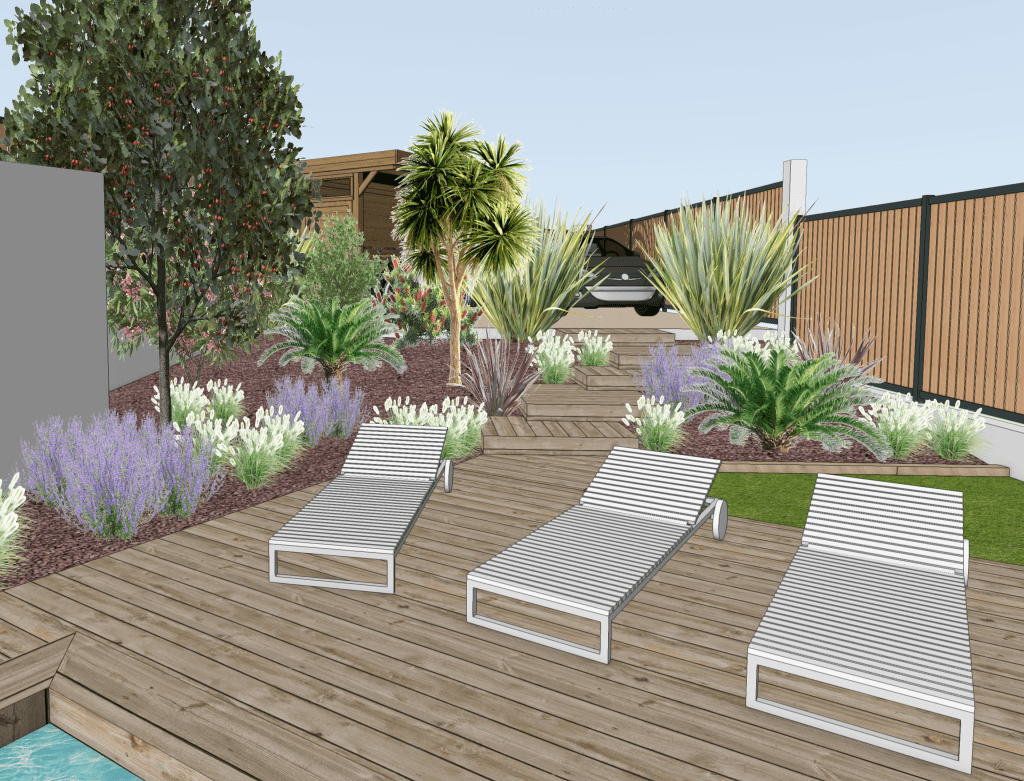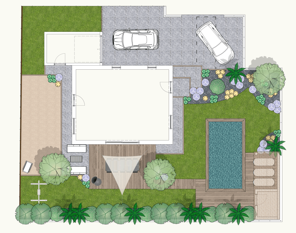 MES REALISATIONS Emplacements des projets Jardin naturaliste – 150m2 Jardin et piscine naturelle – 2000m2Coure et jardin naturaliste – 1000m2Jardin naturaliste et potager – 500m2Jardin tropical – 50m2Transformation d’une coure en jardin – 300m2Jardin méditerranéen – 380m2Jardin contemporain – 300m2 Exemples de plans 2D Exemples de vues 3D